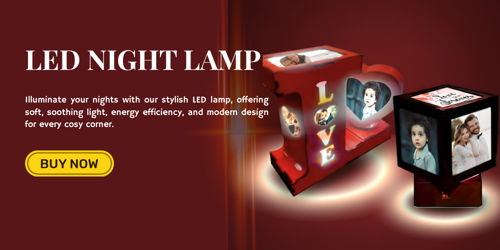 LED Rotating Lamp MDF Photo Frame Night Lamp Personalized Print Photo Frame Gifts for Birthday, Anniversary etc for Wife Girlfriend Mother Daughter Boyfriend Husband Parents etc.